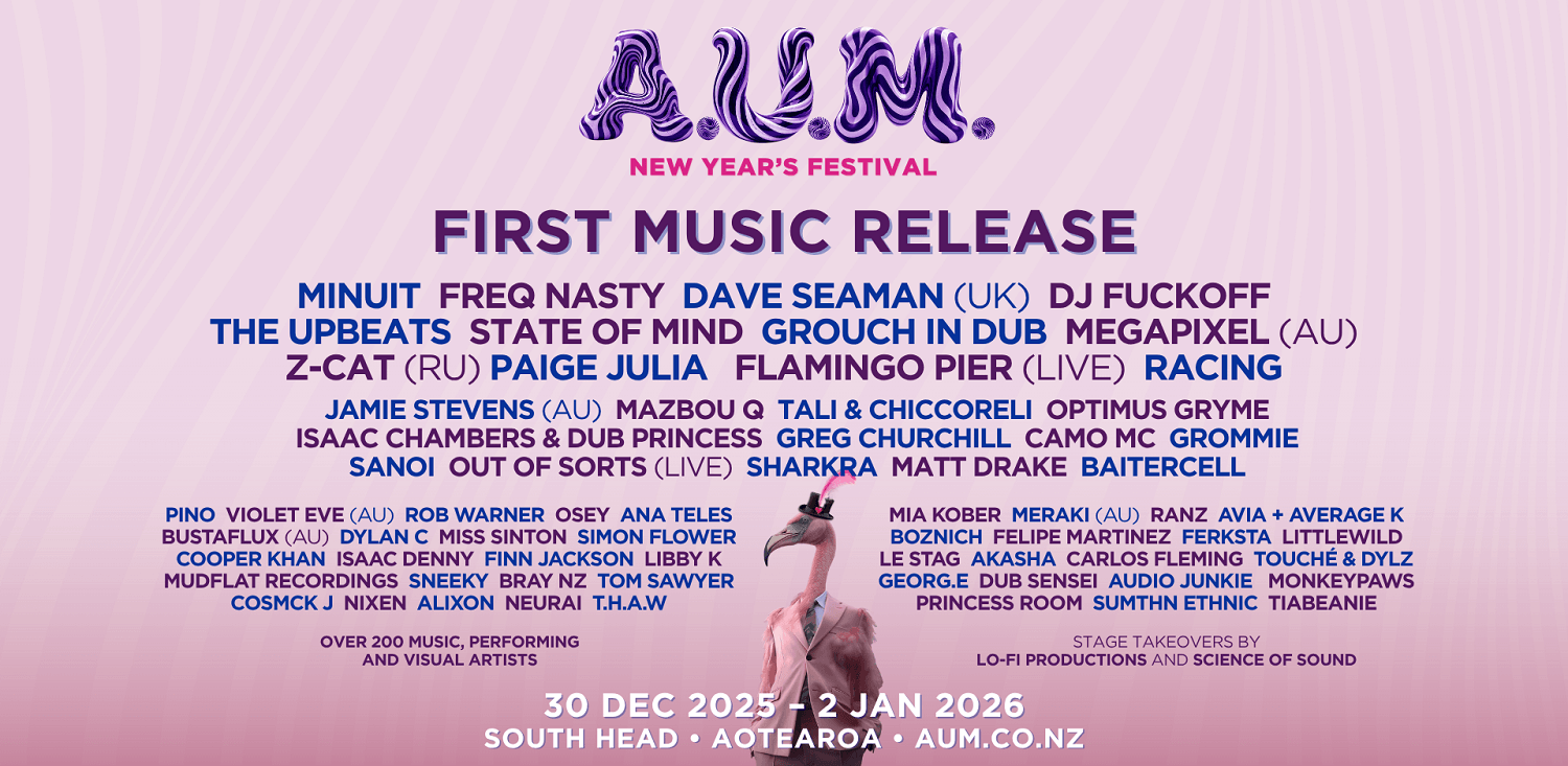 Welcome to our first music lineup for AUM Festival 2025. 4 stages across 3 days and nights packed with top local talent and some international icons. This year we have some Kiwis doing amazing things on the global stage coming home to join us.